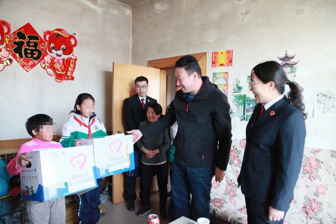 “暖心包”传递“大温暖”——开学季,鄂托克旗人民检察院未检检察官、法治副校长前往鄂托克旗赛乌素地区与杭锦旗安达社会工作服务中心志愿者、赛乌素绿苑小学教师一同将“温暖包+法治关爱”送到困境儿童家中,旨在做好开学季孤儿、农村留守儿童、家庭困难儿童关爱服务工作,为困境儿童营造生活无忧、充满关爱的成长环境。