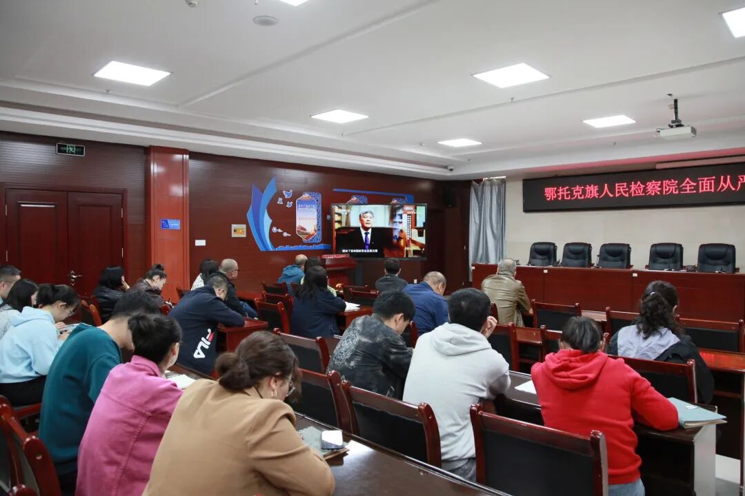 为深入学习宣传贯彻党的二十大精神,全面贯彻习近平法治思想,认真落实全面从严治党主体责任,持续深入推进党风廉政建设,营造风清气正的良好氛围,5月5日上午,鄂托克旗人民检察院组织全体检察人员集中学习观看警示教育片《永远吹冲锋号》第一集。