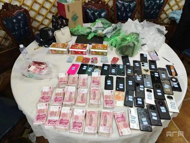 图片来源:摘自央广网,现场的赌资、赌具、涉案物品进行现场扣押(刘逢玺 摄)