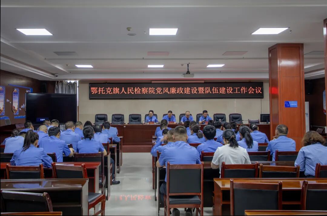 5月7日,鄂托克旗人民检察院召开党风廉政建设暨队伍建设工作会议。院党组书记、检察长折峰出席会议并讲话,党组副书记、副检察长韩飞主持会议,在家院领导班子成员及全体检察人员参会。