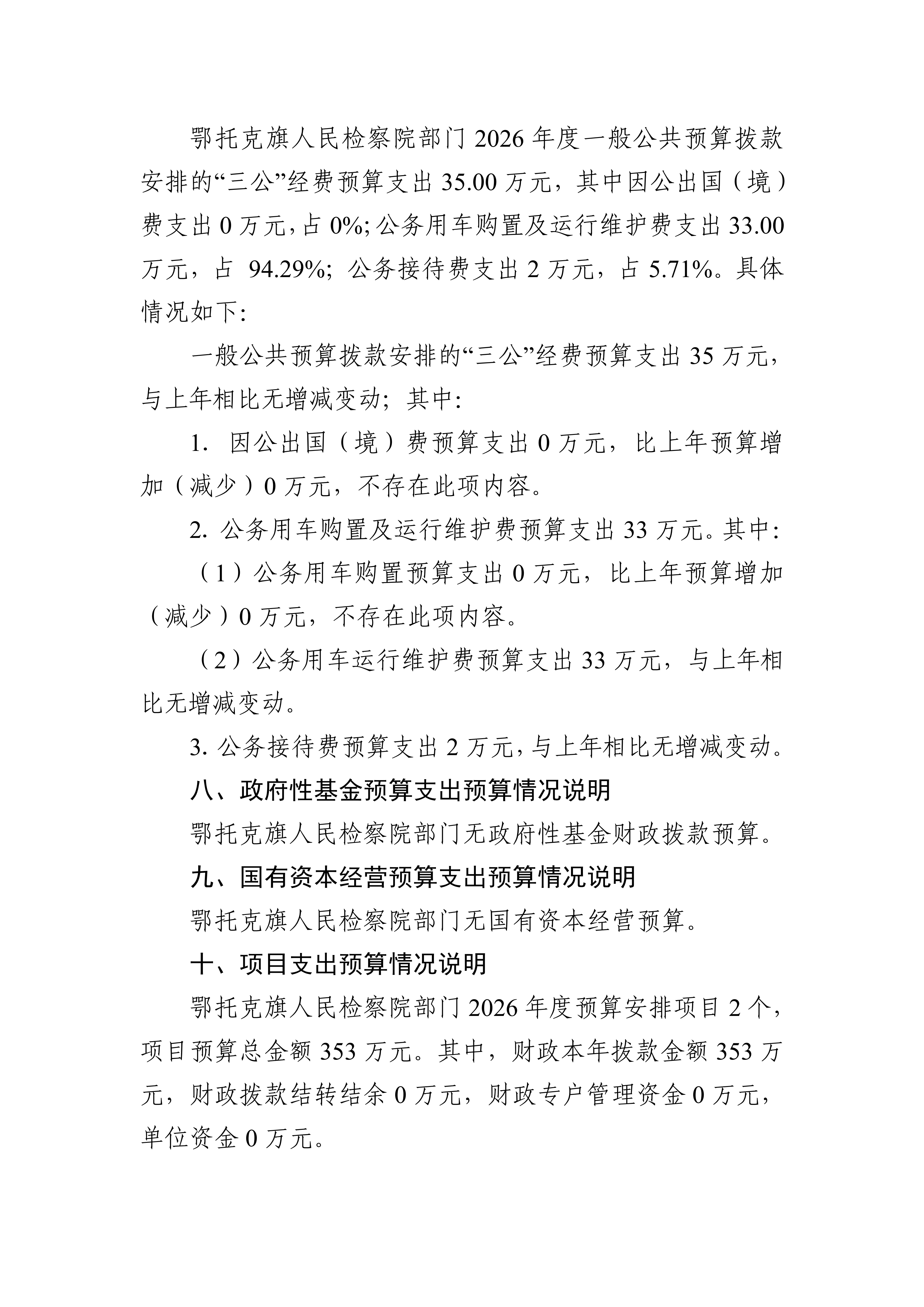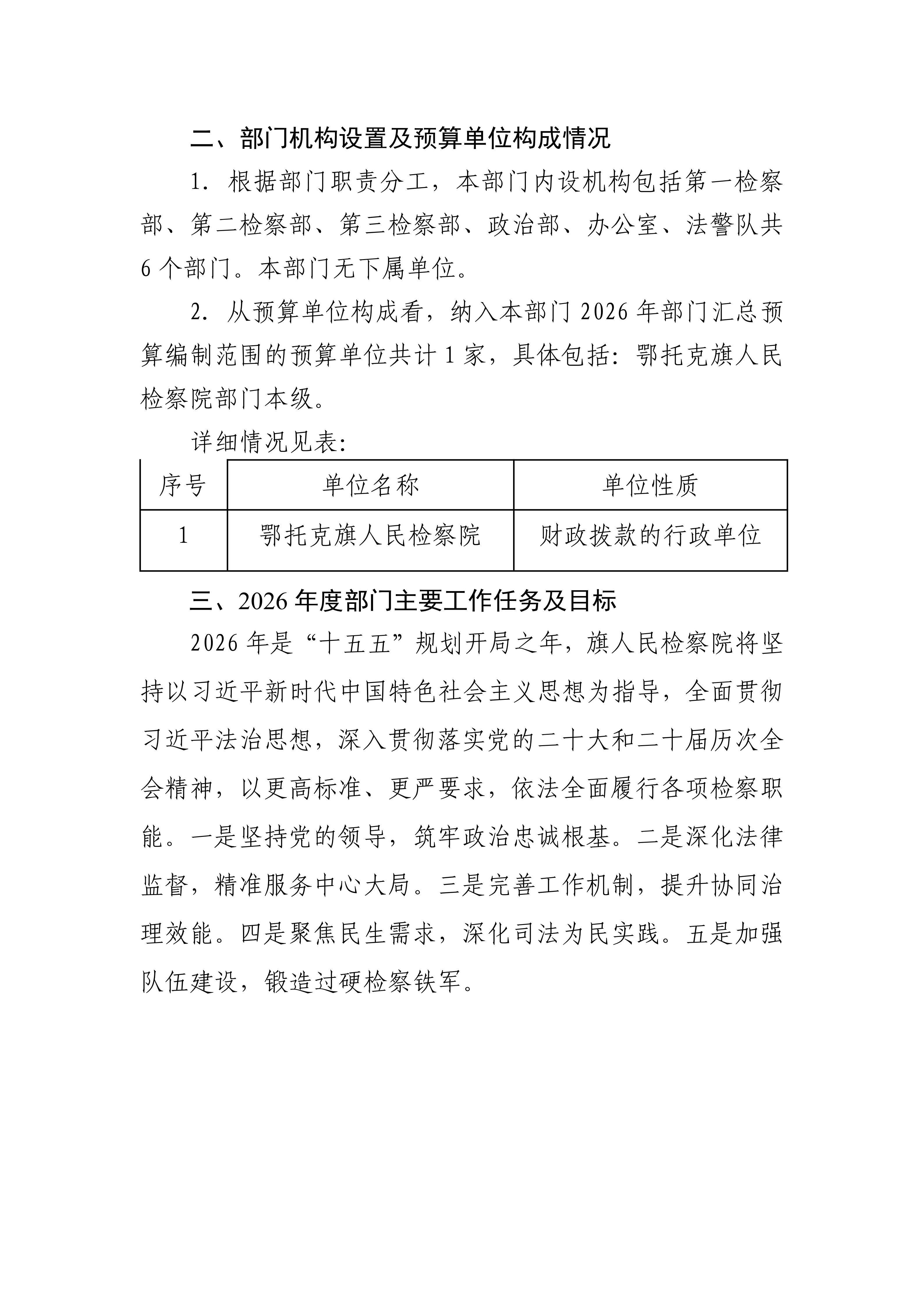 鄂托克旗人民检察院 2026 年部门预算公开报告